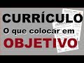certa para o "Objetivo" do Curriculum. Assista depois ao vídeo que vai aparecer aqui, que eu mostre onde é que vão essas frases. Quer colocar? Coloque conforme eu índico na capinha do vídeo que vai mostrar aqui sobre "carta de apresentação", mas não coloque em objetivo que você vai diminuir muito as suas chances. Eu explico melhor no outro vídeo. O que é que você deve colocar no objetivo do seu currículo? E aqui uma dica que eu não tinh a falado antes. Se você procura o primeiro emprego o que